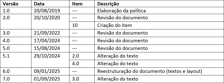 9. ALTERAÇÕES E VALIDADE DA POLÍTICA DE PRIVACIDADE DE DADOS PESSOAIS